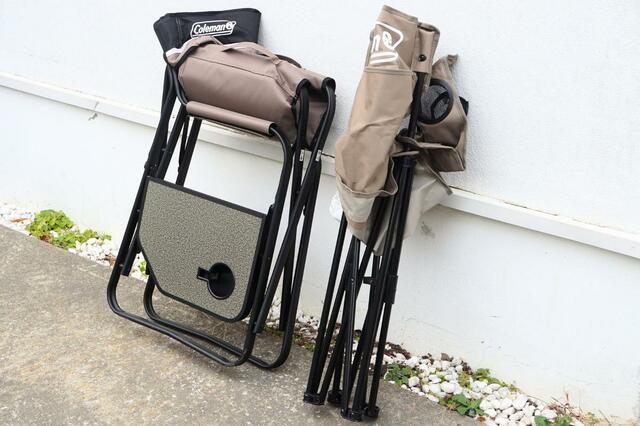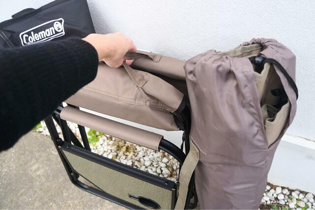 たたんだ状態で持ち運びしやすいよう、「サイドテーブル付き デッキチェア」にはハンドル、「カップホルダー付き リゾートチェア」には肩にかけられる専用袋が付属しているので、持ち運びの負担も軽減されそう。