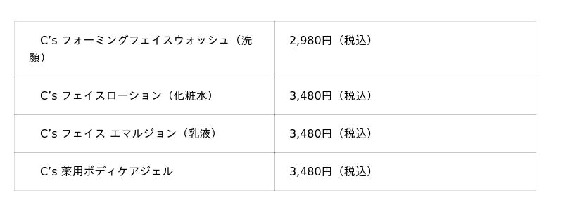 対象商品:C’s(化粧水・乳液・洗顔・ボディジェル)