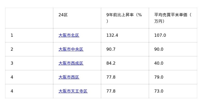 大阪市24区価格価格ランキング6位以降はすみかうるをご覧ください。