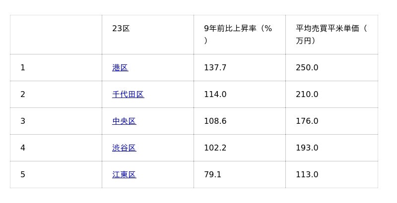 東京23区価格上昇率ランキング6位以降はすみかうるをご覧ください。