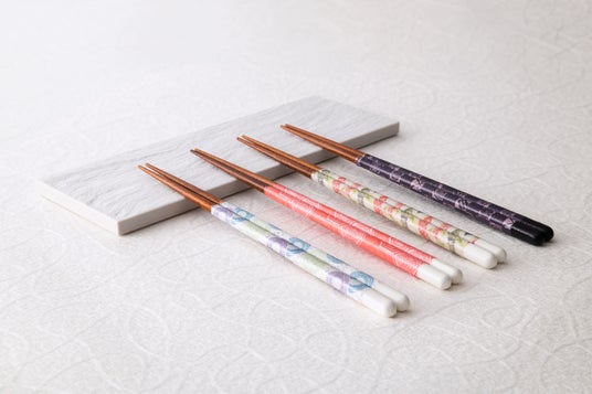 榛原の伝統図案と和紙の技術を、カワイの職人が一本ずつ箸に仕立てました。
