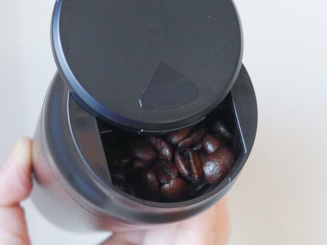 フタを開けてみると、中にコーヒー豆が溜まっていました。
