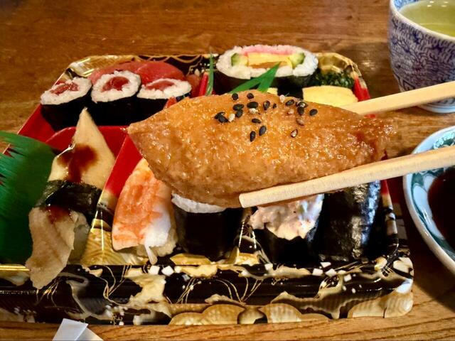 さて、まずは筆者の大好物のいなり寿司からいただきます。