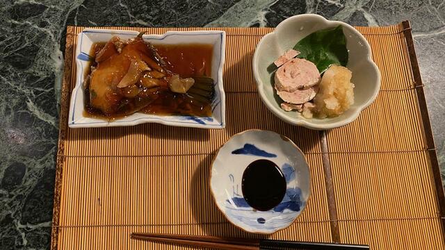 カワハギの煮付け&あん肝(この2品、TORUくん調理です)。