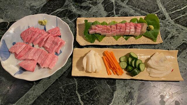 鮪の刺身、半額だった上等牛肉を焼いて塩とわさびで食べる。京都の漬物はもう食べてしまった。仕方なくというわけではないが……自分で漬けた糠漬け(大根と人参ときゅうり)&千枚漬け。