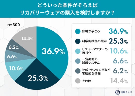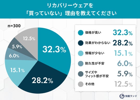 「着るだけで疲労回復」「睡眠の質を高める」として注目を集めるリカバリーウェア。一方で、話題性は高まるものの「気にはなるが、まだ買っていない」という層も少なくありません。快眠グッズ紹介サイト「快眠ランド」を運営するムーンムーン株式会社は、リカバリーウェアを着用したことがない全国の男女300名を対象に、「未購入者が感じている不安や購入条件」に関する調査を実施。その結果、リカバリーウェア市場拡大に阻む「価格・効果・情報不足」という3つの障壁と、購入を後押しする具体的条件が明らかになりました。
