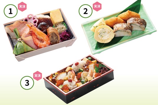 :昆布のうま味がたっぷりと詰まった秘伝のタレで炊き上げた、人気の佃煮3種を弁当に盛り付けました。