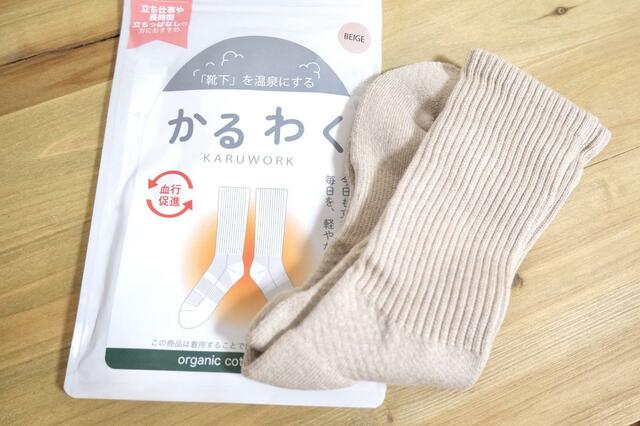 JamgardEnの「かるわく(KARUWORK)」は、立ち仕事や長時間の移動をがんばる人の足を支えるために生まれた靴下。