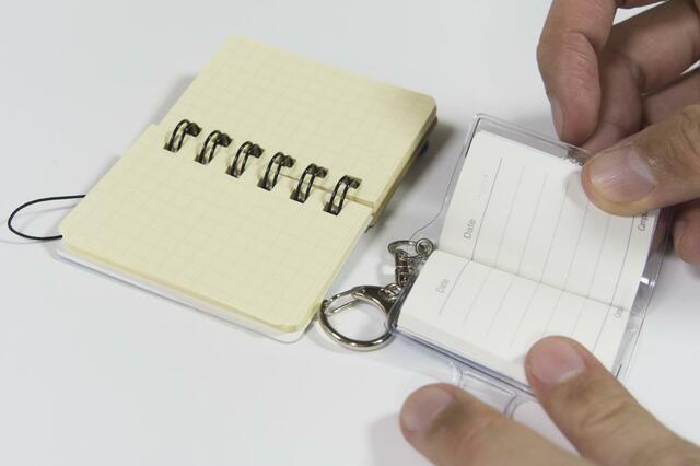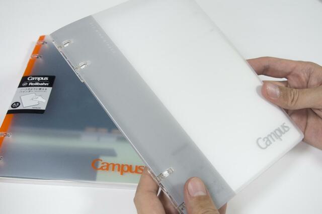 リフィルの差し替え方法が特徴的で、リング側を開いたりするのではなくリフィル側の切れ込みを使って着脱するという仕組み。