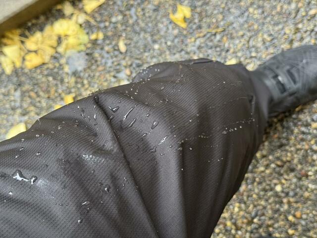 実際の撥水性能は「まずまず」といった印象ですが、雪雲の雪が溶けたような冬の小雨や、軽い雪なら問題なく耐えてくれる印象。