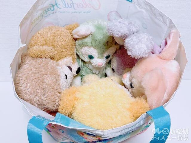 ダッフィーたちのSサイズのぬいぐるみが、7人全員入っちゃう!