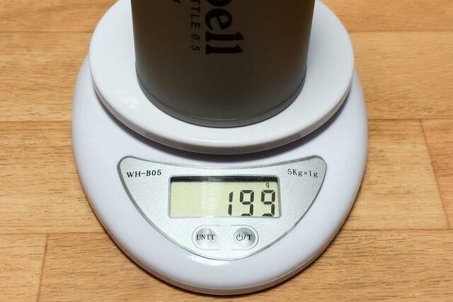 重量は約200gとなっており、同じくモンベルで販売されているステンレス素材の「アルパイン サーモボトル 0.5L(237g)」と比較すると、約16%ほど軽量です。