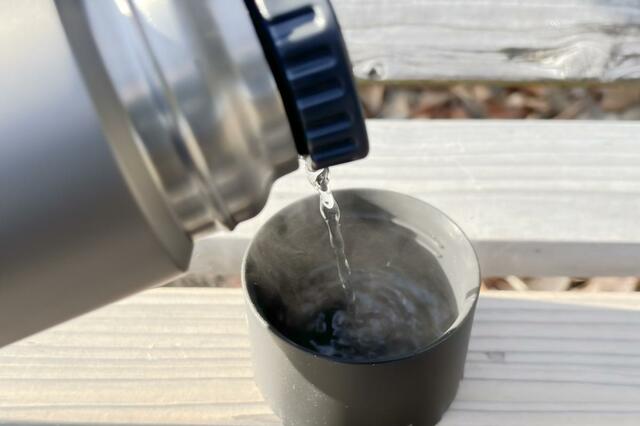 実際に冬山登山で使用してみたところ、早朝に自宅で入れたお湯が、正午すぎでもすぐには飲めないほど熱々の状態でした。
