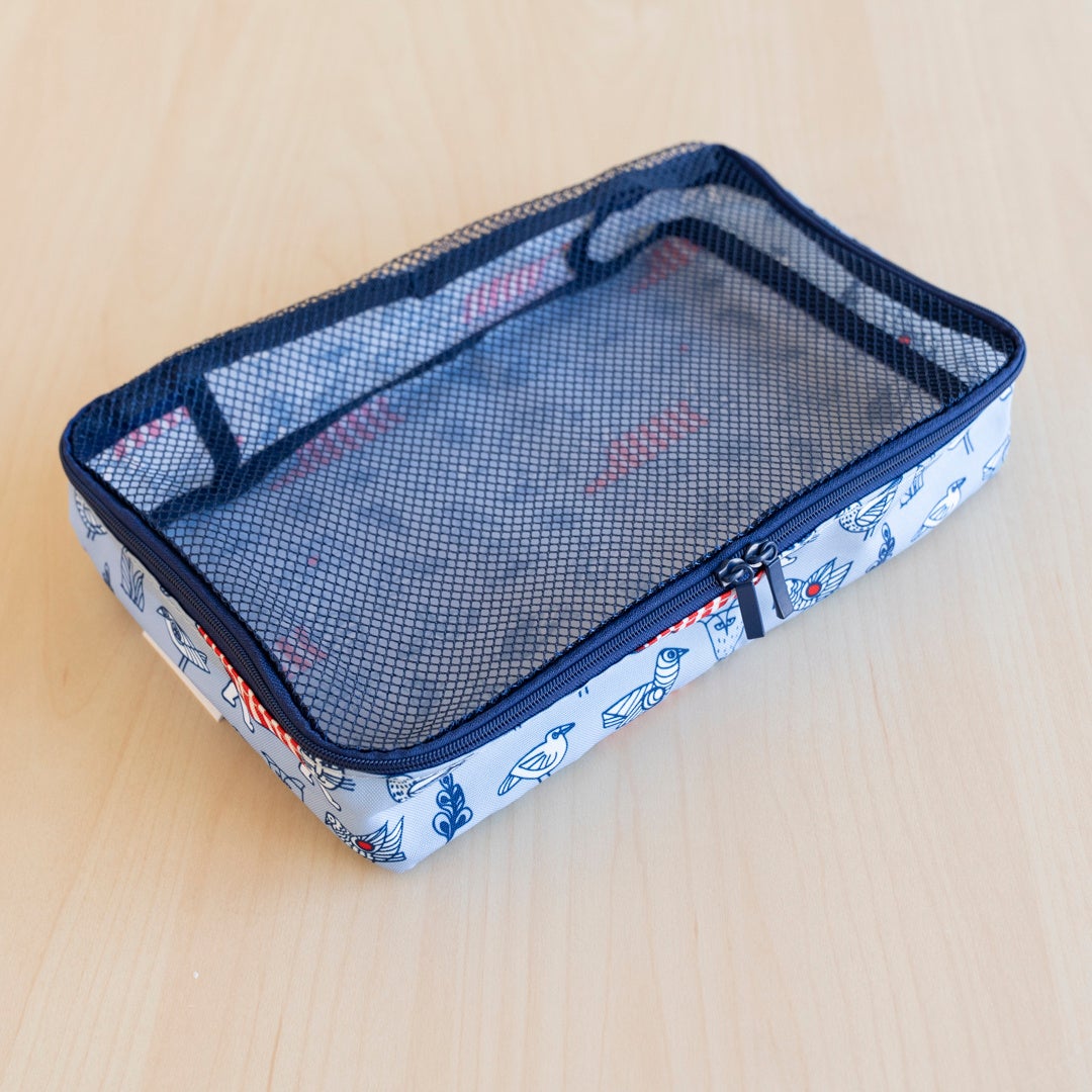 旅行の際は靴下や下着の収納に、日常使いではケーブルや充電器など、散らかりがちなガジェット類の整理に活躍します。