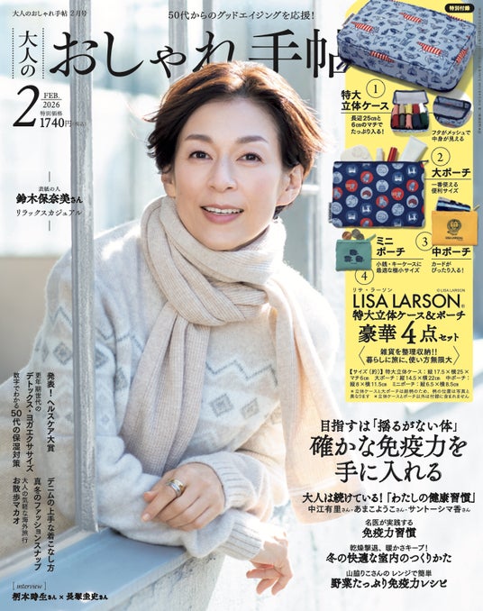 2026年1月7日(水)発売の「大人のおしゃれ手帖」2月号の特別付録に、リサ・ラーソンの「特大立体ケース&ポーチ豪華4点セット」が登場します。