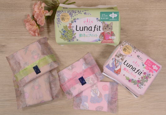2025年4月に登場した「エリス ルナフィット」は、体の動きにフィットする“スライドフィット吸収体”を採用した、日常のちょいズレストレスを軽減する生理用ナプキンです。“スライドフィット吸収体”が自在にスライドし、体の動きにフィット。肌とのスキマができにくく、経血もしっかりキャッチする仕様になっています。また肌へのやさしさにこだわり、肌とのこすれを軽減する独自の形を採用しています。「エリス ルナフィット ヒグチユウコ コラボデザイン」(全10商品)は、ヒグチユウコさんの作品の中でも人気の高いネコのイラストを用いています。商品の特長でもある、肌へのやさしさを表現した穏やかな表情のネコのイラストを採用し、不織布の個包装にカラープリント。サイズごとに異なる柔らかな色味のネコとお花が、生理中の気分を前向きにするデザインです。お好きなデザインや使い心地に応じて商品をお選びいただけるよう、ふんわり肌当たりやわらかな「ふんわりタイプ」(2種)と軽やかな着け心地の「超スリムタイプ」(4種)の2タイプでコラボデザインを展開します。