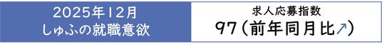 応募指数は前月比-1、前年同月比+6の97。前月と比較して、求人数は増加、応募数は減少しました。