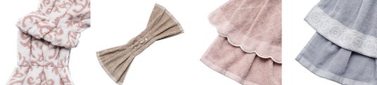 特にドレスタオルは、ボタン留め仕様で手を拭いてもタオルバーから落ちにくく、キッチンや洗面所での使用に最適です。