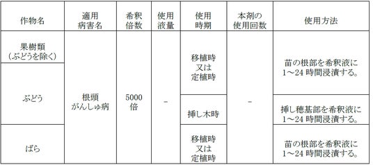 種類:非病原性リゾビウム ビティス水和剤