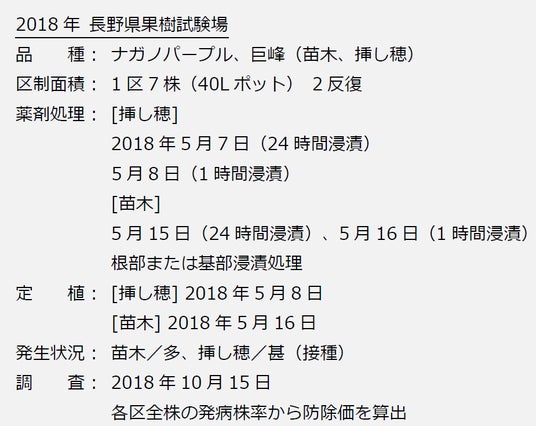 エコアークのぶどう根頭がんしゅ病に対する防除効果(ポット試験)