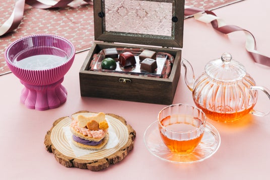 愛犬向けには、五反田にある「ドッグバルBIBICHE」協力のもと、バレンタインドッグラウンジ限定のケーキを提供します。添加物や人工調味料を一切使用せずに作られたハート形のケーキです。上に載せる骨型のクッキーには名前を入れることができます。また、飼い主の方には、「スイーツTOKYO百名店」(*2)に連続選出のパティスリー「LES CACAOS」のチョコレートとカカオティーを用意します。東京の街並みを眺めながら愛犬とともにティータイムを楽しめます。