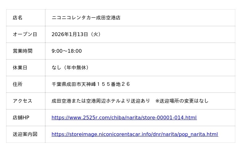 2026年1月13日(火)移転リニューアルオープンする「ニコニコレンタカー成田空港店」は、この度、店舗拡張を目的として新店舗へ移転いたしました。