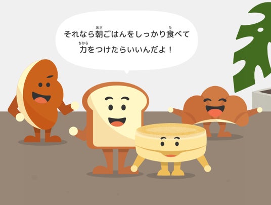 パンたちとのやりとりを通して、栄養バランスのとれたサンドイッチが手軽に作れて、朝食にぴったりであることを知ります。