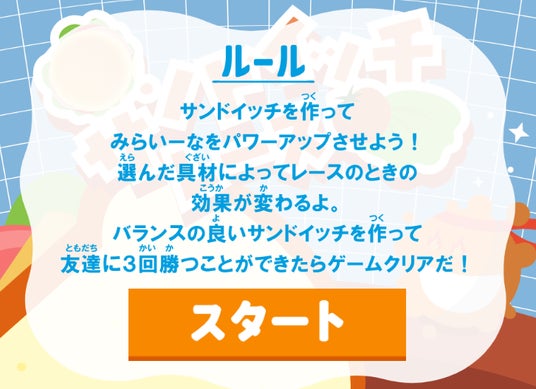 「みらいいパーク」で無料配信中!子どもが楽しみながら栄養について学べるマンガ+ゲームコンテンツ「サンドイッチレース」を開発