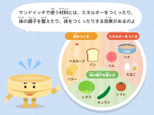 近年、朝ごはんを十分に取らない、もしくは食べても栄養が偏った食事になっている子どもが増加しています。忙しい朝でも手軽に栄養を補える食事としてサンドイッチの可能性に注目し、楽しみながら栄養を学べる新しい形の食育体験として本コンテンツを開発しました。