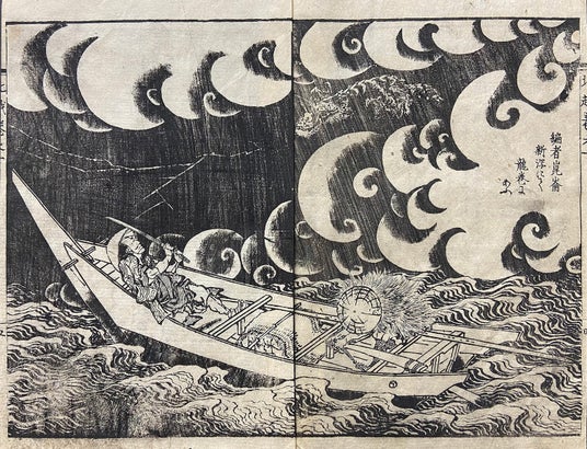 『北越奇談』より ⻯巻に遭遇する作者崑崙(北斎館所蔵)