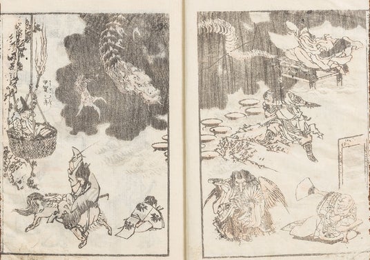『北斎漫画』より ヤマタノオロチなど(北斎館所蔵)