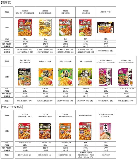 丸美屋食品工業株式会社(本社:東京都杉並区、社長:阿部豊太郎)は、楽しい食卓の強力な助っ人として人気の「メニュー用調味料」シリーズの新商品・リニューアル商品を2026年1月16日(金)より順次発売いたします。