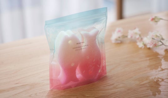 2026年の「さくら」は淡いピンクの不織布を採用、ピンクとホワイトの脱膜スポンジを1つずつ組み合わせた2個セットにしました。パッケージには春の澄み渡る空に桜が咲き誇る様子を描き、贈り物にも最適なデザインに仕上げています。 また、今回「おさかなスポンジ」として初めてジッパー付きパッケージを採用。開封後は小物入れとして再利用いただくなど、暮らしの中で長くお楽しみいただけます。