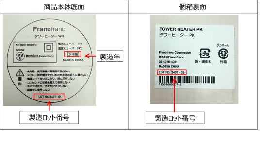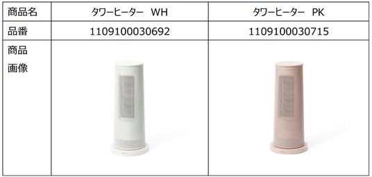 このたび、弊社が2024年9月から2025年12月まで販売いたしました「タワーヒーター(2024年製)」につき、製造工程での配線結合不良による動作不良や、発熱により本体の一部に熱変形が発生した商品が見つかりましたので、対象商品を自主回収することといたしました。