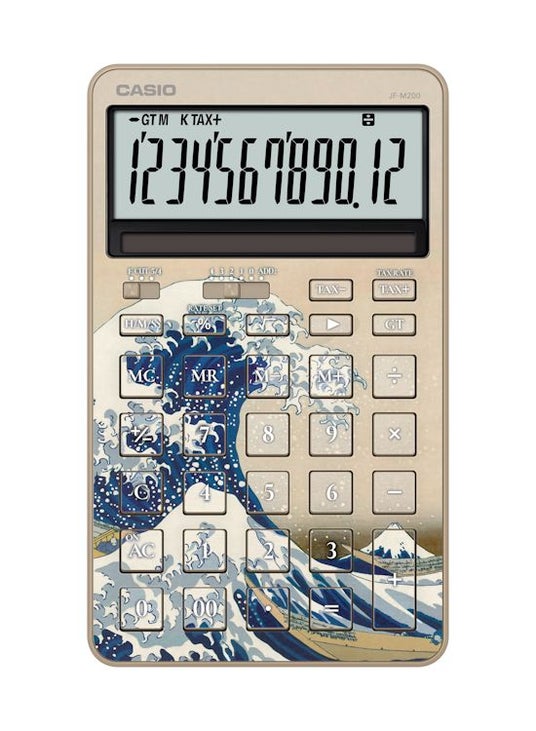 カシオ計算機は、スタイリッシュ電卓の新製品として、江戸時代の浮世絵師・葛飾北斎の代表作「神奈川沖浪裏(かながわおきなみうら)」と「凱風快晴(がいふうかいせい)」をデザインモチーフにした『JF-M200-TJ-KHK/JF-M200-TJ-KHG』を、1月22日に数量限定で発売します。