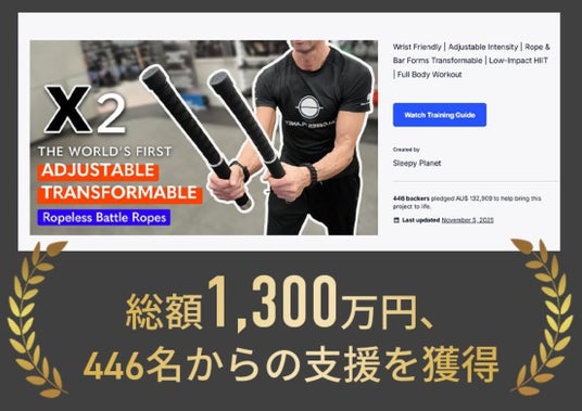 Sleepy Planet Pty Ltd(本社:オーストラリア)が開発したロープレスバトルロープ「X2」は、日本市場での正規販売代理店である当社・GO-EMOTiON(ゴーエモーション/所在地:宮城県)が、日本国内としては初めて、2026年1月13日(火)より応援購入サービスMakuakeにて先行販売を開始いたしました。