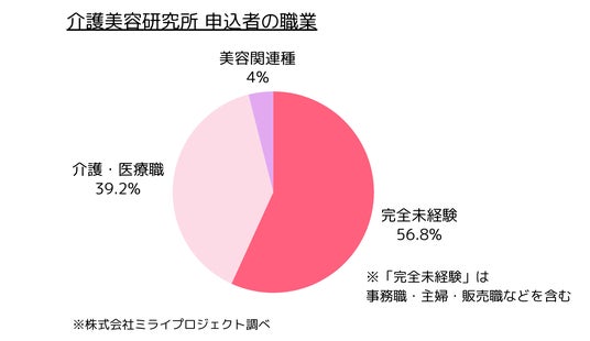 2025年度の介護美容研究所受講申込者の属性を調査した結果、これまでの「介護・美容のプロが学ぶ場所」というイメージを覆すデータが明らかになりました。1.【データ公開】56.8%が完全未経験。事務・接客・主婦が異業種内訳の約6割を占める