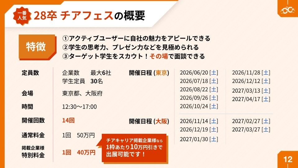 27卒においては各回定員オーバーの学生集客に成功し、28卒からは大阪開催を本格化いたします。
