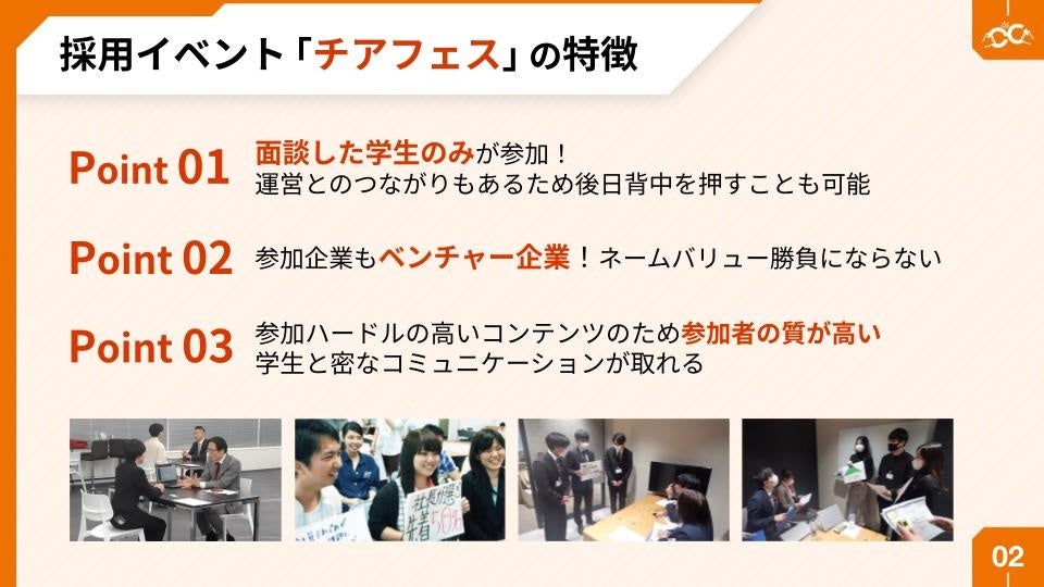 毎年企業参画枠がすぐに埋まるほどの人気イベントで、チアキャリアのユーザーの中でも特に意欲の高い学生とリアルに出会えるため、採用成功率も非常に高いのが特徴です。