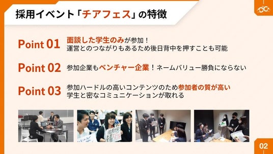 ベンチャー志向・セールス・起業志向の学生にまとめて出会うことができます。2.イベント内で学生を評価しやすい
