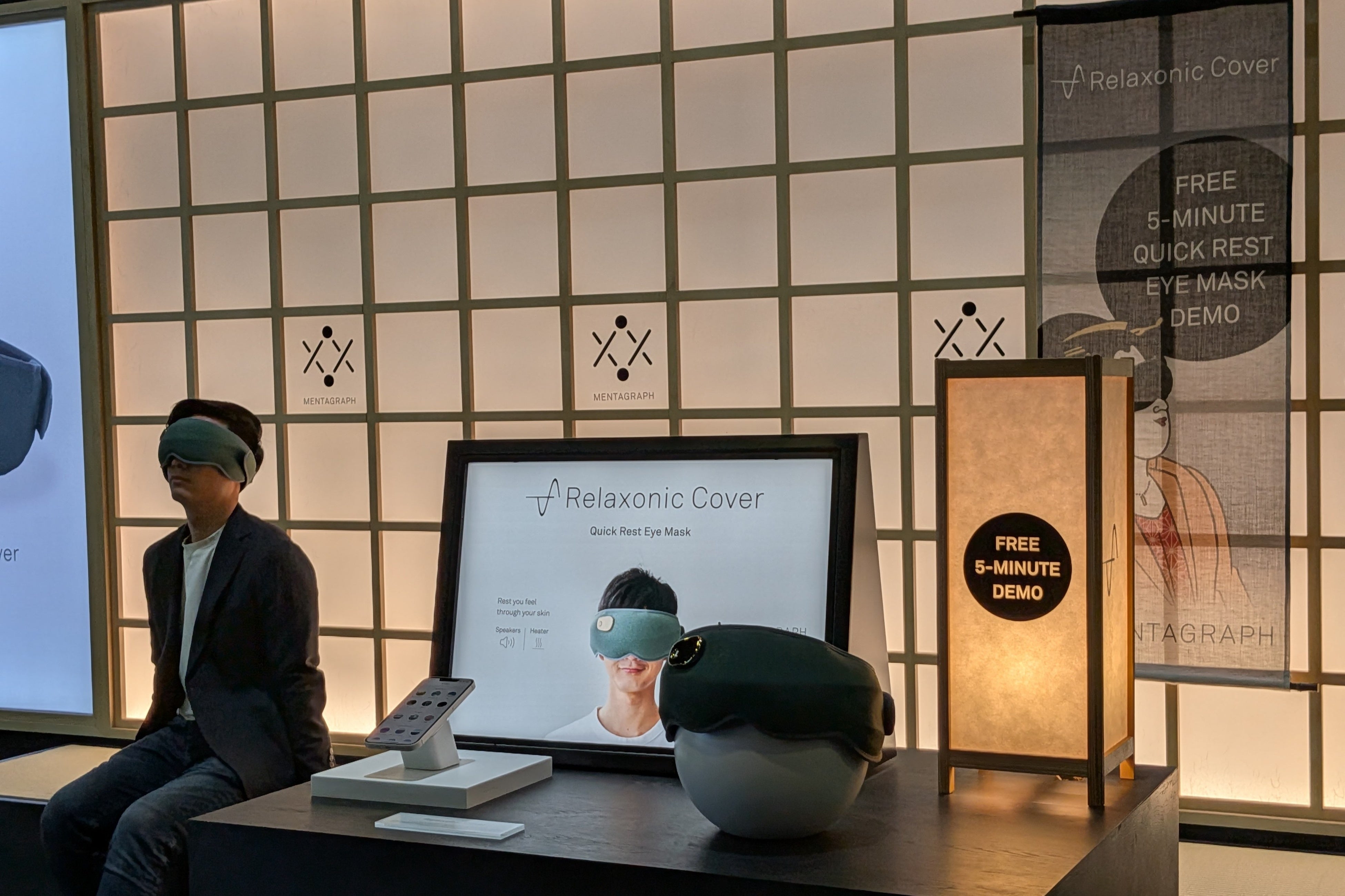 またMENTAGRAPHの取り組みは、状態の「可視化」にとどまらず、可視化されたデータを起点に、実際の休息や行動につなげる体験設計を特徴としています。スマートリング「Mentoring2」による計測と、スピード休息アイマスク「Relaxonic Cover(リラソニックカバー)」による短時間の休息体験を組み合わせることで、自分自身を「知る」ことから「整える」までを一貫して支援する新しいウェルビーイングのあり方を提案しました。