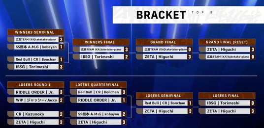 しかし、ここからひぐちは執念の連勝を遂げ、見事にTop 8へと駒を進めます。Top 8でもその勢いは衰えず、並み居る強豪たちを圧倒。敗者側から駆け上がった不屈の闘志でグランドファイナルでの2連勝を成し遂げ、見事に逆転優勝を掴み取りました。