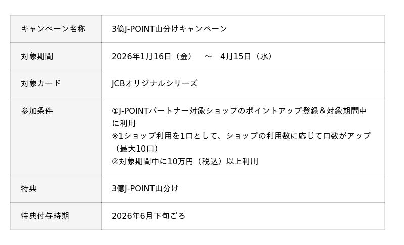 さらに、リリース記念として“3億J-POINT”を山分けする大型キャンペーンも2026年1月16日(金)から開始します。