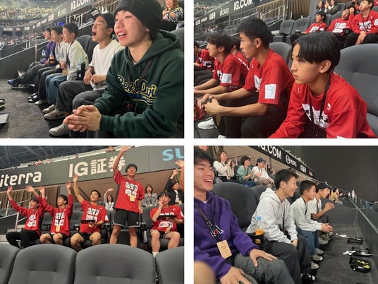 スピード感あふれるプレーや迫力あるシュートの数々に、子どもたちは目を輝かせながら観戦していました。歓声をあげる場面も多く、プロ選手の高い技術や試合の緊張感を肌で感じる、貴重な時間となりました。こうした体験を通じて、日々の練習に対する意欲の向上や、将来の夢を思い描くきっかけとなることが期待されます。