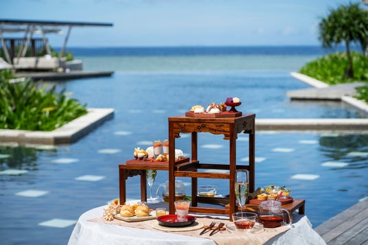 プールサイドで味わう極上アフタヌーンティーサンゴ礁が広がる海を臨む特等席で、春に花を咲かせる南国の花々をスイーツやティーセットで味わう「海風アフタヌーンティー」。琉球王朝時代から長きにわたり、客人をもてなす際に振る舞われていた琉球菓子を、モダンなアフタヌーンティーに仕立てました。プールサイドでの至福のひとときを過ごせます。