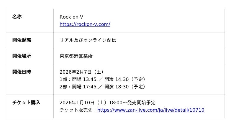 ▶ Rock on V公式サイト:https://rockon-v.com/