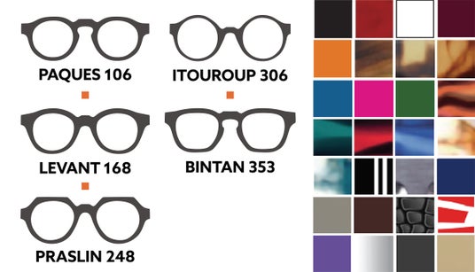 全17型をブラックマットカラーでサンプルセットをご用意、また全9色を「Paques 106(mod.166)」でサンプルセットをご用意いたします。「Plus is + プラス イズ プラス」コレクションの納期は約6ヶ月、税込価格132,000円です。