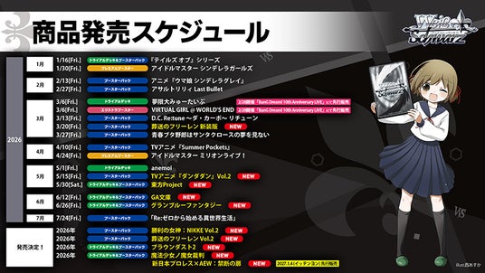 株式会社ブシロード(本社:東京都中野区 代表取締役社長:木谷高明)は、1月12日(月・祝)に『カードファイト!! ヴァンガード 15th Anniversary ブシロード新春大発表会2026』を開催し、ヴァイスシュヴァルツの新規タイトルの発表や今後の展開を発表しましたことをご報告いたします。