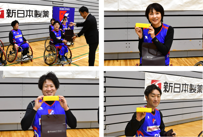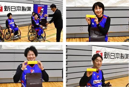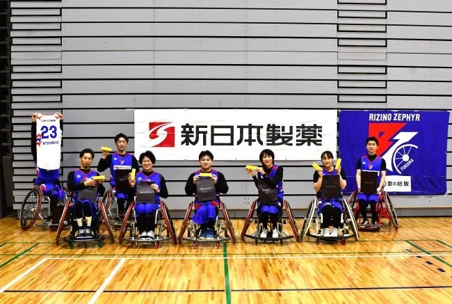 新日本製薬 株式会社(本社:福岡市、代表取締役社長CEO:後藤孝洋)は、プロバスケットボールBリーグに所属するライジングゼファーフクオカ株式会社(本社:福岡市、代表取締役社長:古川宏一郎)に属する車いすバスケットボールチーム「ライジングゼファーフクオカWheelchair」の選手・スタッフの皆さまに、スキンケアブランド『パーフェクトワンフォーカス』の商品を1年分進呈いたしました。