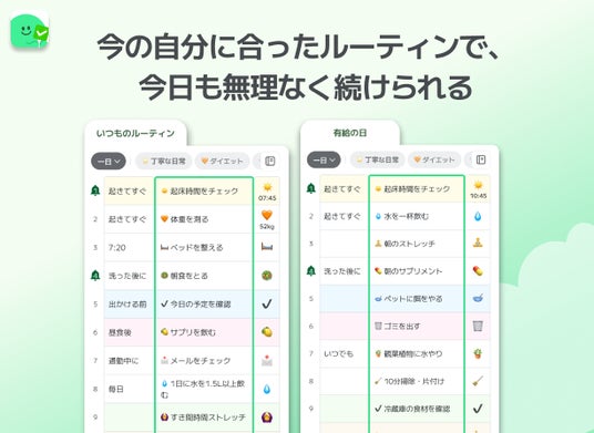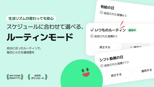 習慣管理アプリ「マイルーティン」は、新年にあたって目標を増やすことを促すのではなく、すでに立てた目標を日常の行動へと変換し、継続できる**「構造」をつくること**に焦点を当てている。その一環として、生活パターンに応じて切り替えて使える新機能「ルーティンモード」を公開した。
